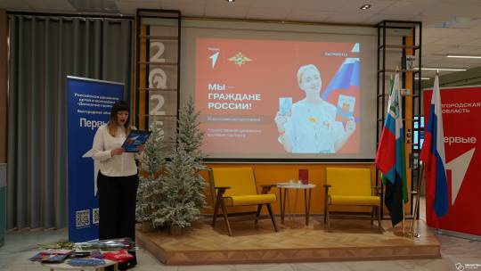 Кроме паспорта, каждый получил памятные подарки: текст Конституции РФ, обложку для документа и, конечно, значки от «Движения Первых».