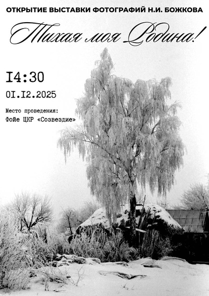 1 декабря в 14:30 в фойе ЦКР «Созвездие» состоится торжественное открытие фотовыставки работ Николая Ивановича Божкова «Тихая моя Родина!».